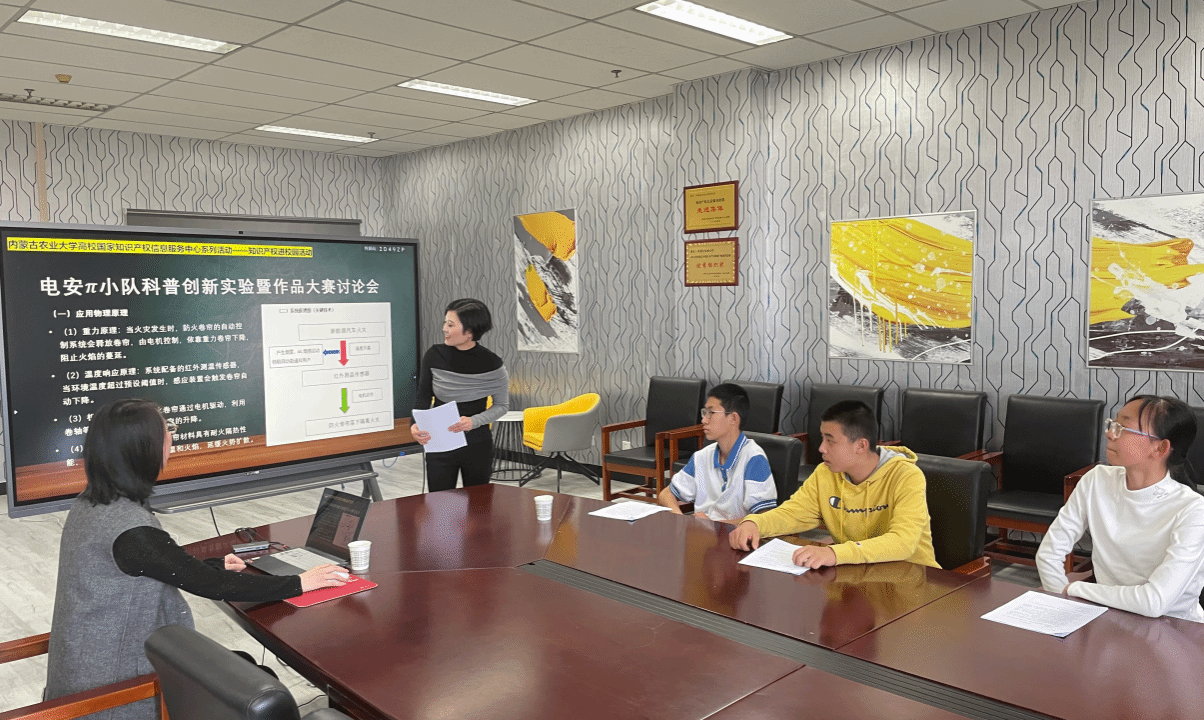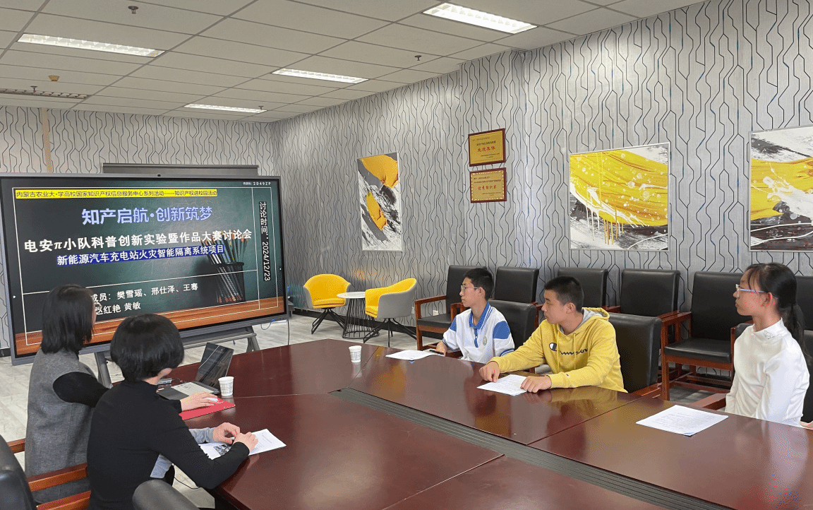 2024年12月23日,内蒙古农业大学高校国家知识产权信息服务中心为参加第十一届全国青年科普创新实验暨作品大赛的师生团队开展赛前专题培训,重点指导参赛作品《新能源汽车充电站火灾智能隔离系统项目》。此次培训以国家《全民科学素质行动规划纲要(2021—2035年)》为引领,结合“智慧·安全·环保”大赛主题,通过知识产权服务赋能青少年科创实践,为培育未来创新型人才注入新动能。